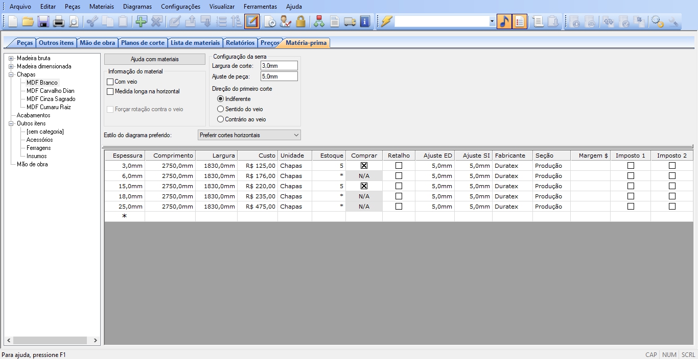 Ficou muito boa essa versão em português, agora da pra usar a ferramenta 100%. Vocês tem o banco de dados de materiais de MDF ja cadastrados no programa?