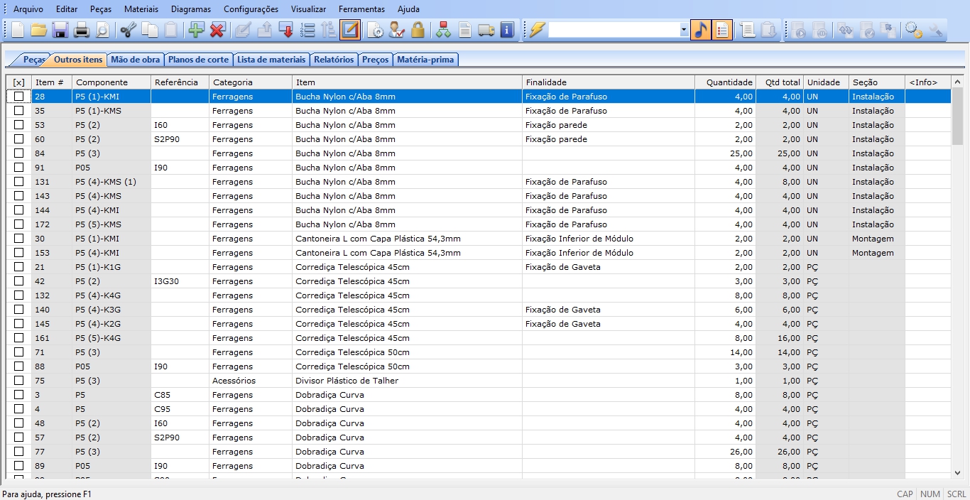 • Gerenciamento de estoque de matérias-primas e ajuste automático com base em seus projetos;