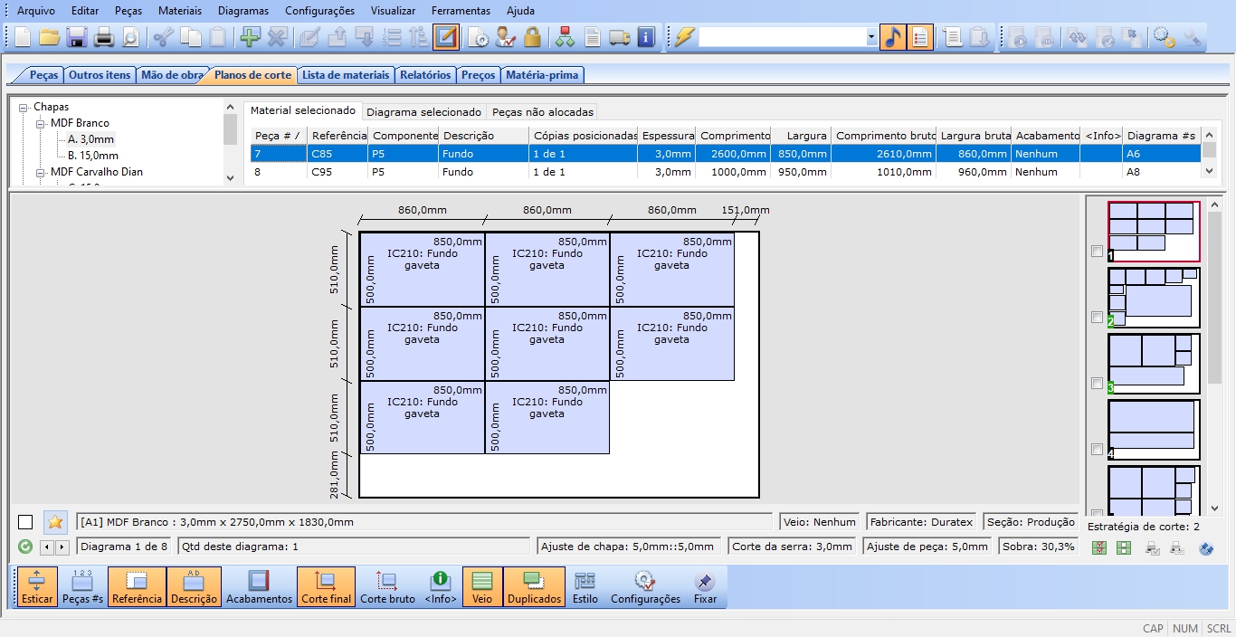 • Diagramas de corte otimizados para qualquer tipo de chapas;